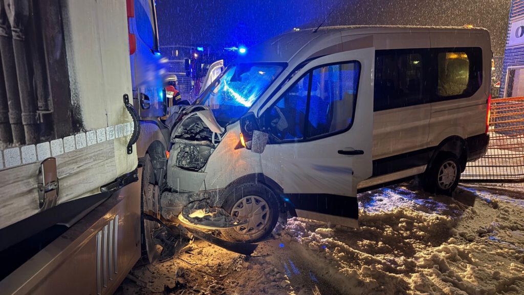 Am frühen morgen wurden wir mit der Freiwilligen Feuerwehr Derching zu einem Verkehrsunfall im Derchinger Industriegebiet alarmiert. Ein Kleinbus, welcher zum Glück bis auf den Fahrer nicht besetzt war, kollidierte mit einem LKW.