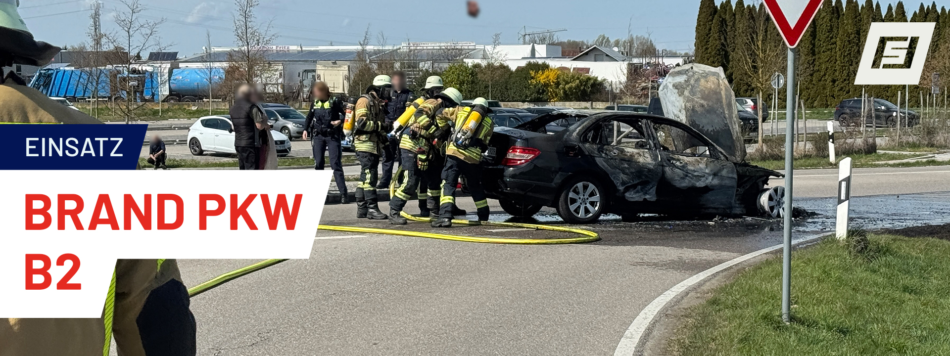 Höhe Park & Ride Platz Derching kam es zum Vollbrand eines PKW. Wir wurden von der Freiwilligen Feuerwehr Derching zur Versorgung mit Löschwasser nachalarmiert. Einsatzdaten Datum 05.04.2026 Einsatzort Derching, Neue Bergstraße Alarmierungsart Sirene, Funkmelder, App Alarmierungszeit 13:35 Uhr Einsatzende 14:20 Uhr eingesetzte Kräfte Feuerwehr Stätzling, Feuerwehr Derching, Polizei